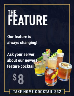 We always have multiple Take-Home Cocktails that are available in a 750 ml bottles. Each bottle holds roughly 5-6 cocktails.